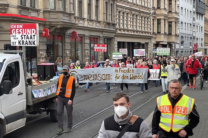 Wir fordern immer noch: Beendet den Corona-Wahnsinn, die Test-Pandemie, den Masken- und Impfzwang, die Diskriminierung durch Zugangsregelungen. Wir wollen Frieden. Für jeden.