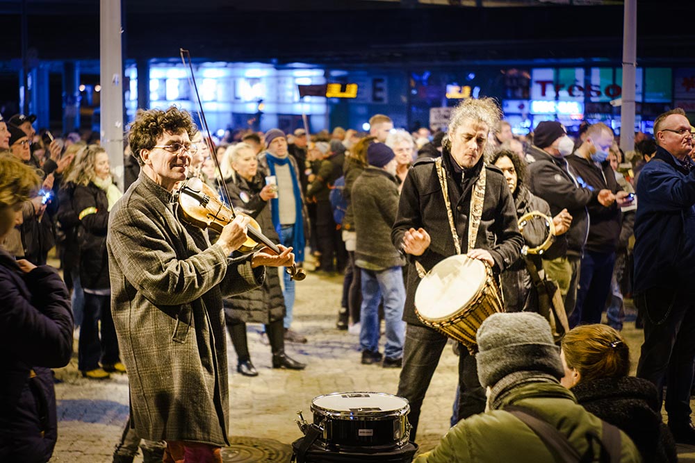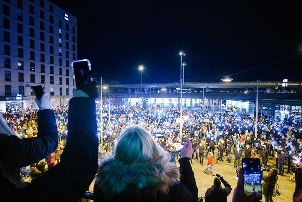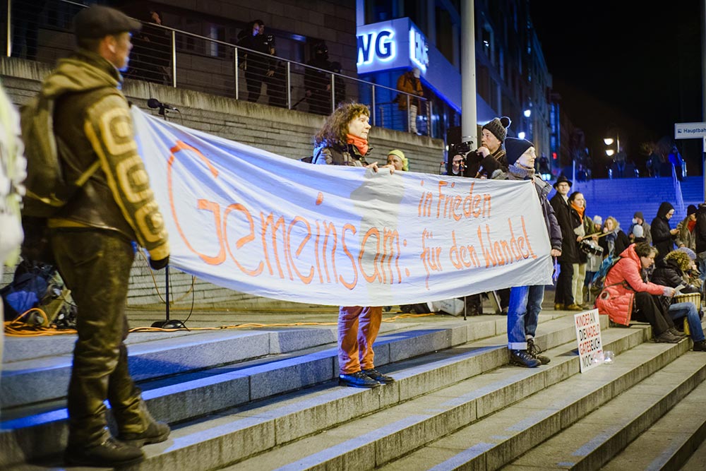 Die Bewegung Halle meldet sich zurück im neuen Jahr. Wir waren da, wir waren laut, wir waren viele. Nach Schätzungen mehr als letzte Woche. Der Zug über die Hochstraße am Riebeckplatz schien endlos.