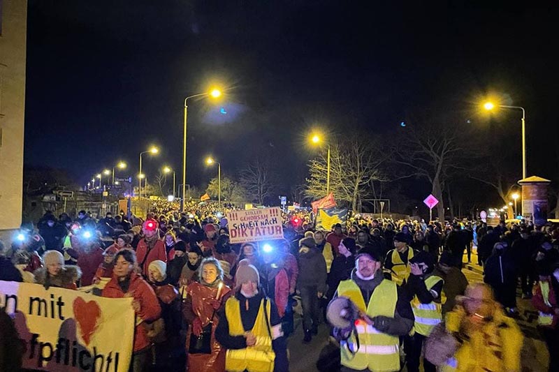 Über den Rannischen Platz, die Liebenauer Straße entlang, vorbei an der Schwimmhalle in der Robert-Koch-Straße, zurück vorbei am Stadion. So hatten wieder andere Menschen die Gelegenheit, den Spaziergang zu sehen und sich einen eigenen Überblick zu machen, wer da wie demonstriert.